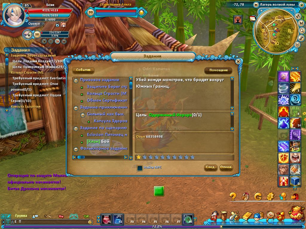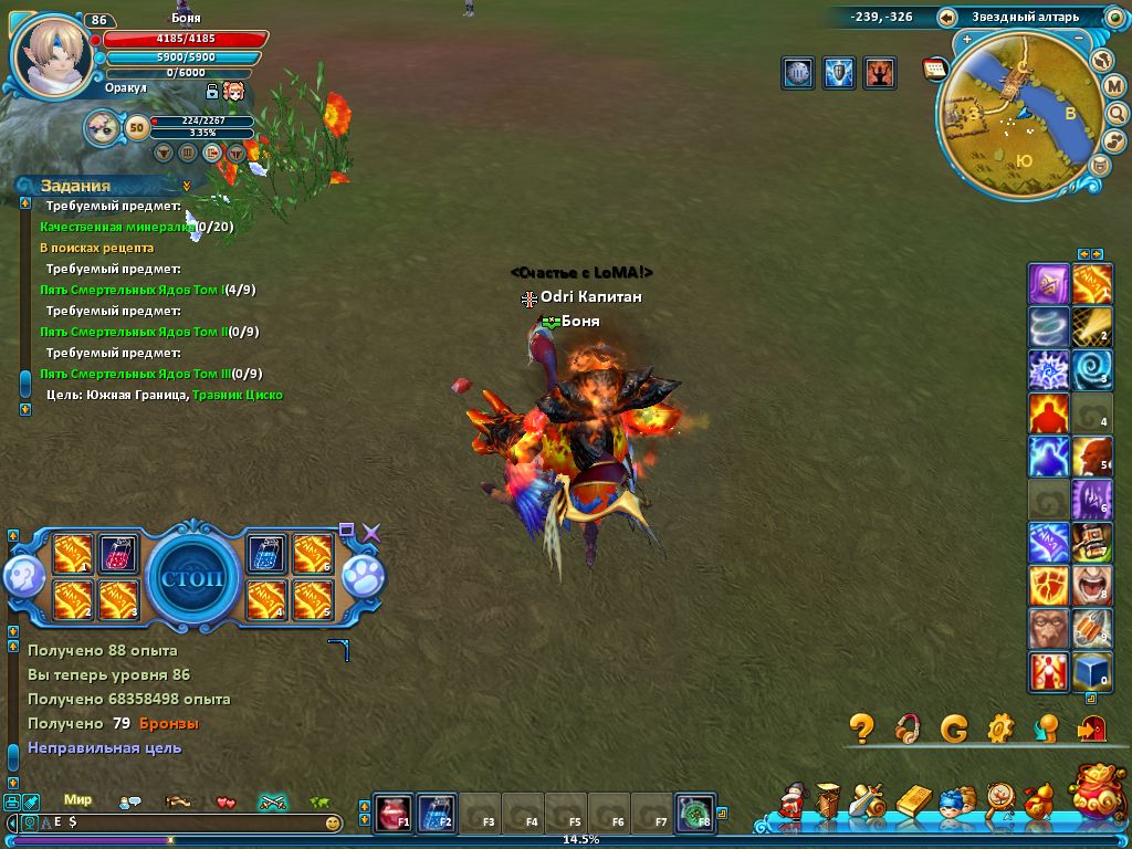 6. Когда вы убьёте боса, вам автоматом зачислят опыт, который отразится в окне чата, в той вкладке